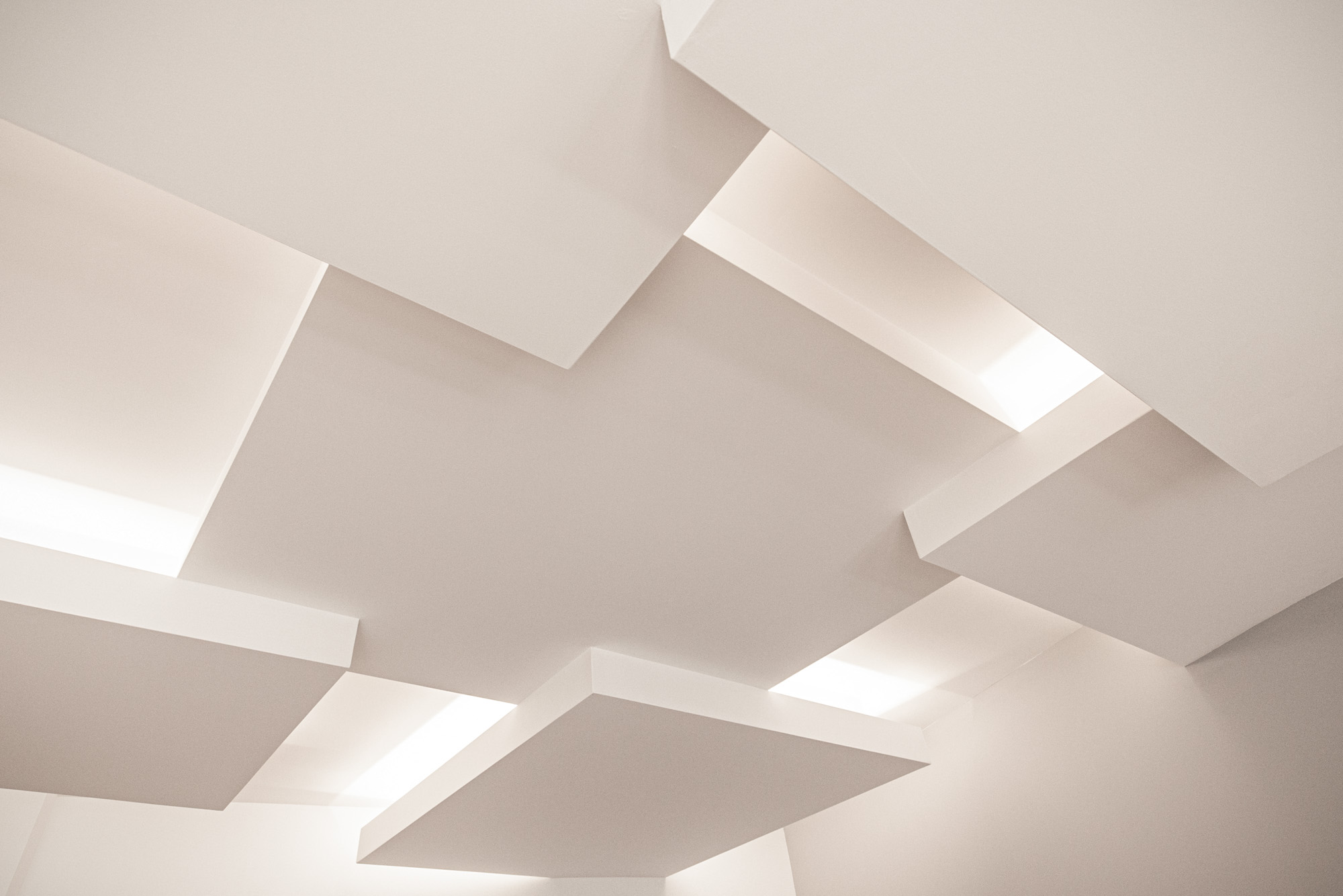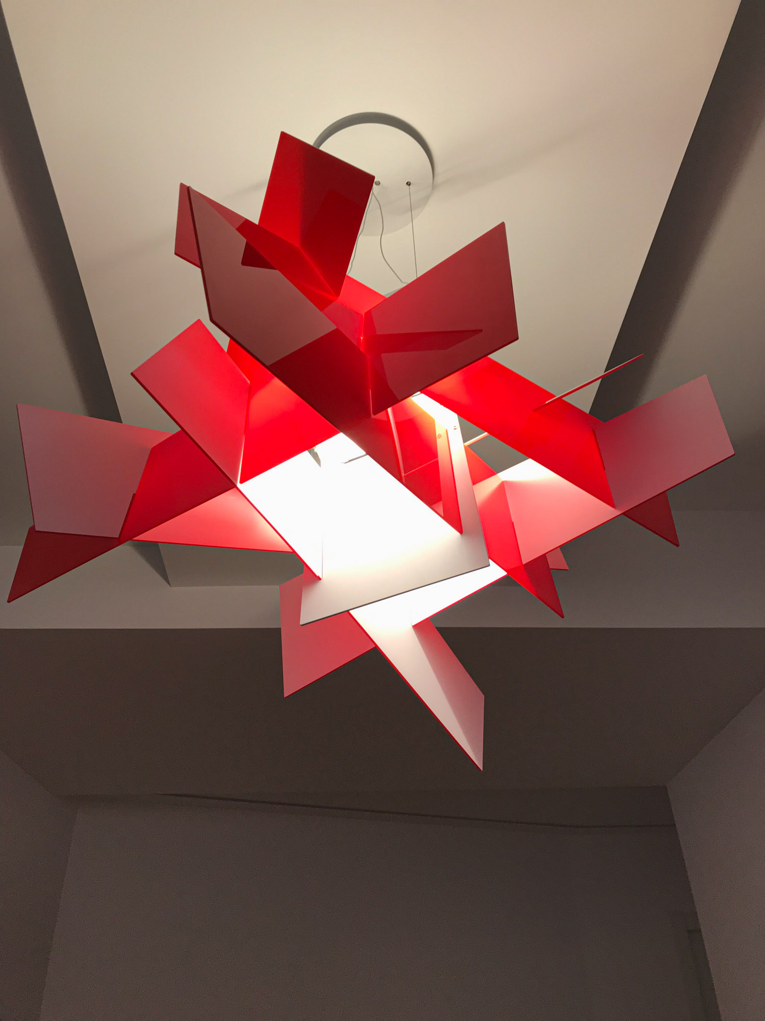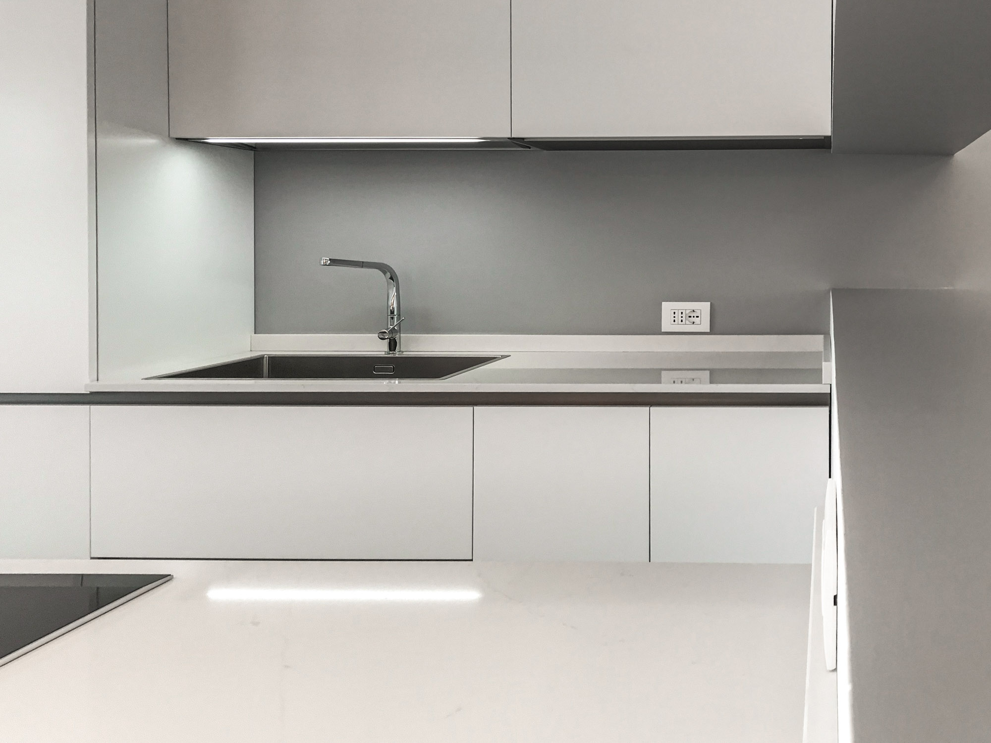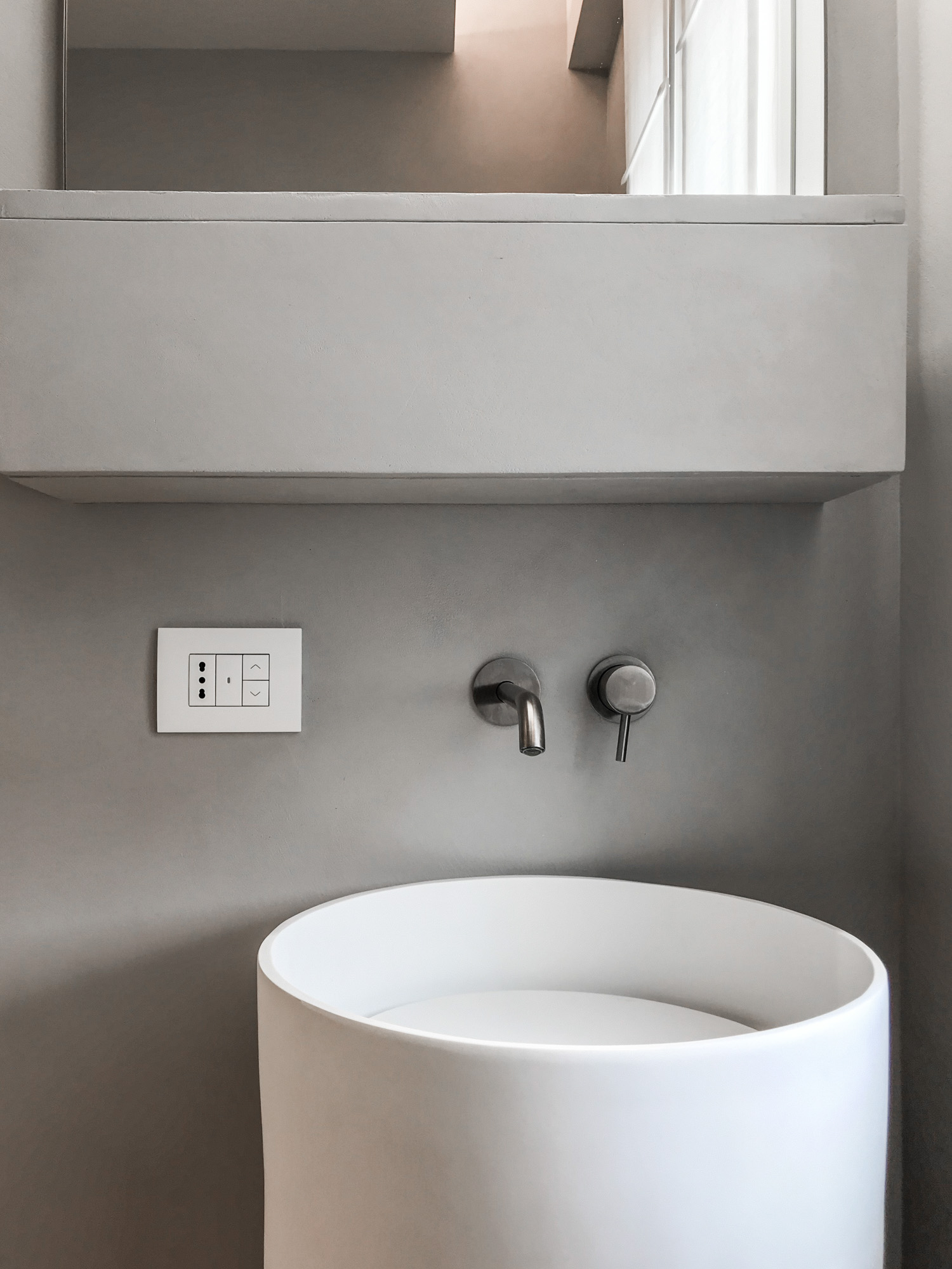 L’appartamento è un mix di originalità e classe, a cui si uniscono funzionalità e praticità d’uso quotidiano. È un progetto interessante per la ricerca accurata dei materiali, del colore e delle soluzioni architettoniche: il controsoffitto del soggiorno, è un’opera d’arte. Difatti, sfruttando l’altezza esistente, sono stati creati volumi contigui di diversa dimensione che hanno “felicemente confuso” la pianta assai irregolare dell’appartamento.